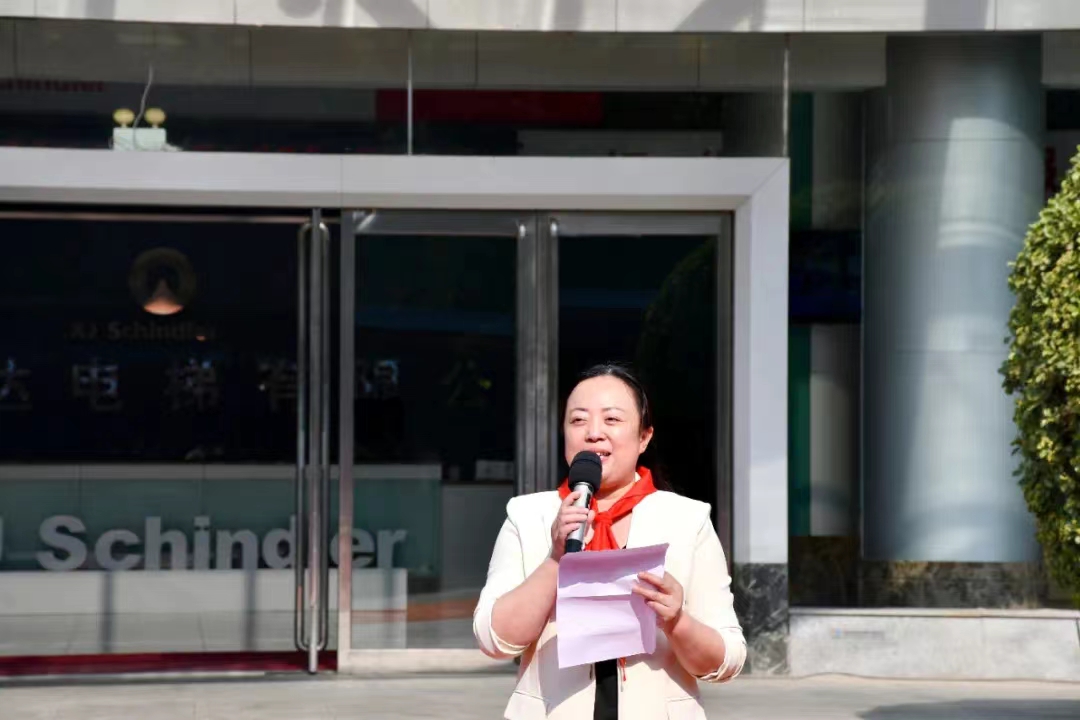 最后,公司售后總監(jiān)吳娜代表西繼迅達(dá)電梯感謝開發(fā)區(qū)文教衛(wèi)和瑞昌路小學(xué)送來的錦旗。她說,西繼迅達(dá)作為一家 有強(qiáng)烈社會(huì)責(zé)任感的企業(yè),為了給咱們?nèi)鸩沸W(xué)的同學(xué)們營造一個(gè)良好的學(xué)習(xí)環(huán)境,讓孩子們在更多的關(guān)愛中愉 快地學(xué)習(xí)、幸福地成長,我們西繼迅達(dá)電梯為瑞昌路小學(xué)教學(xué)樓捐助電梯,充分凝聚著我們西繼迅達(dá)電梯劉董事長 的愛心和熱情,寄托著我們所有西繼迅達(dá)人的殷切期望,祝愿孩子們好好學(xué)習(xí)!健康成長!早日實(shí)現(xiàn)自己的人生理想。