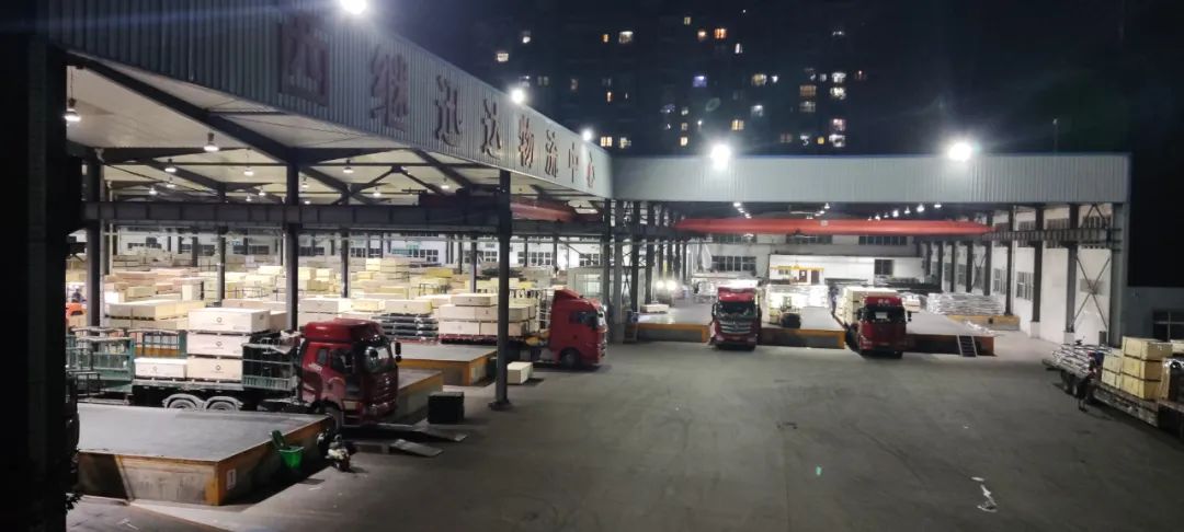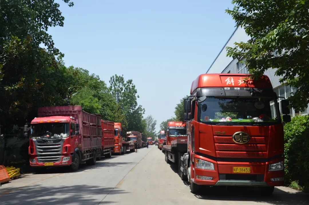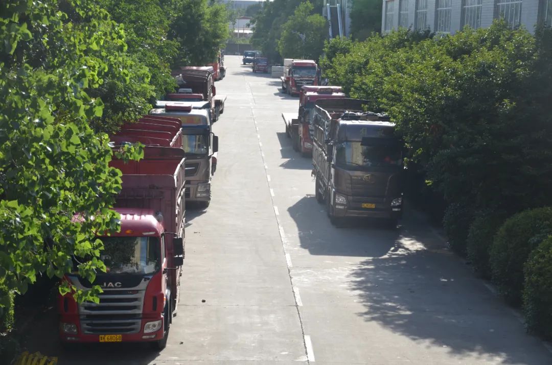 物流發運中心的貨車臨時??繀^,一輛輛等待裝車的貨車,時刻準備著執行更艱巨的任務。
