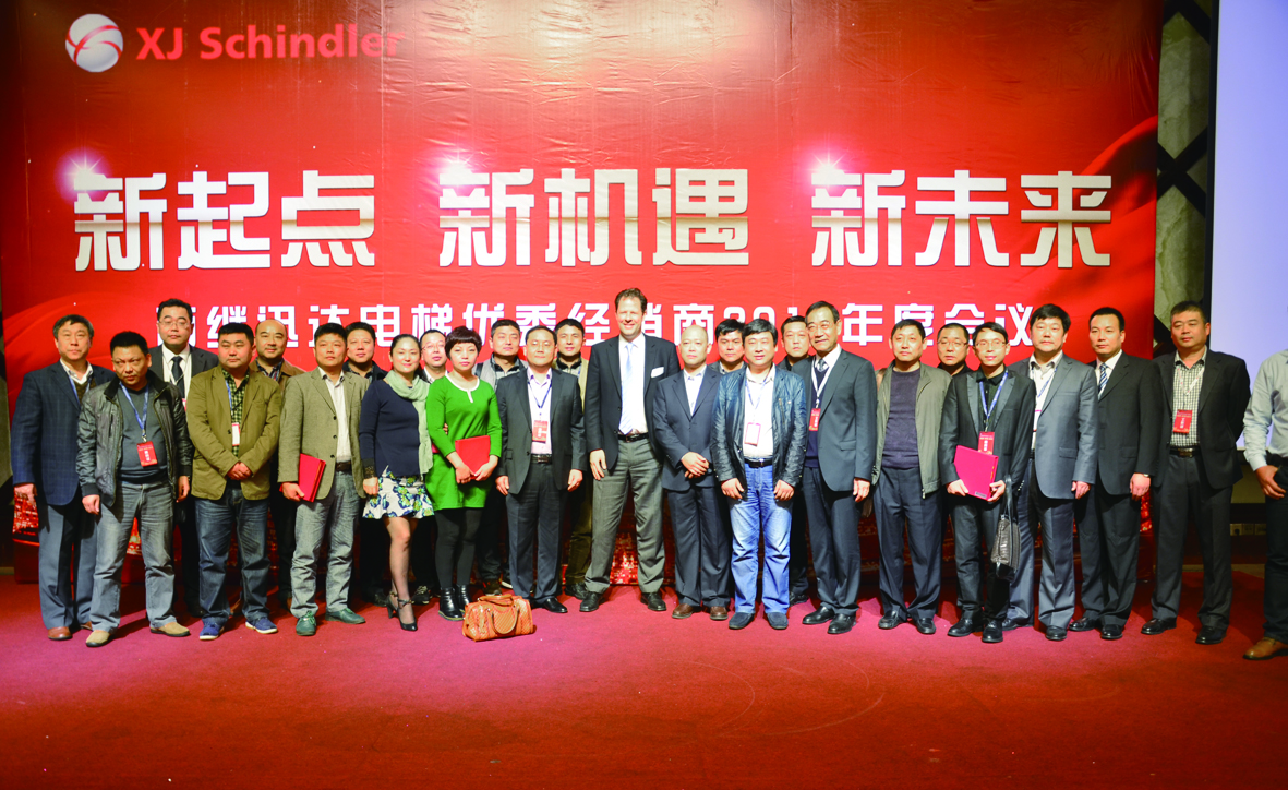 瑞士迅達集團董事、亞太區總裁Mr.Thomas Oetterli,在會上也發表了熱情洋溢的講話,他與大家分享了他來到中國一年來的感受,中國的文化、飲食給他留下了深刻的印象。中國擁有著巨大的電梯市場,電梯飽有量與發達國家相比,還有很大的增長空間。他說,與西繼迅達合作以來,迅達集團與西繼迅達在許多方面都展開了全方位的合作交流,大家互相幫助、互相學習,共同提高。Mr.Thomas Oetterli希望到2018年,西繼迅達和迅達集團的新梯安裝要高于每年十萬臺,保養合同要高于二十萬臺,要攜手贏得中國電梯行業的第一名。