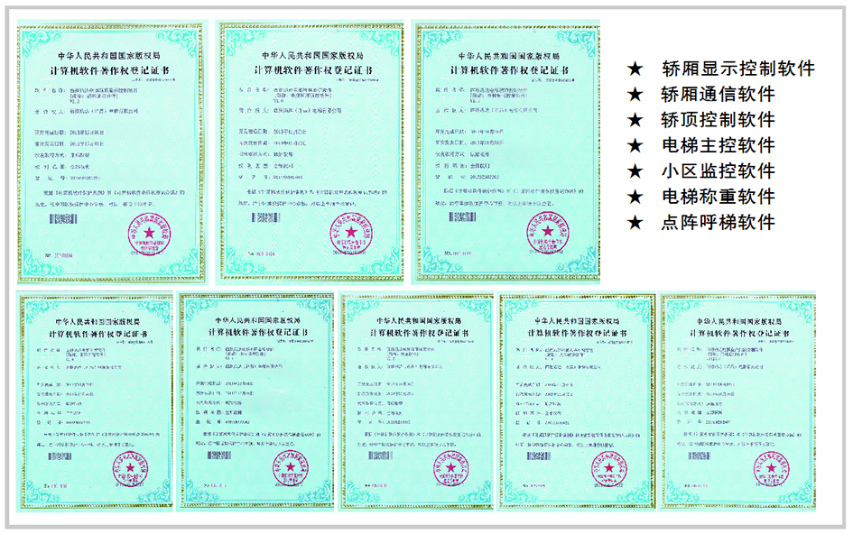 2009-2011年,西繼迅達投資949萬元自主研發了SM6000智能電梯控制系統、獲國家專利10項,其中發明專利1項。隨后,公司又投資2092萬元,歷時兩年,實現了SM6000智能電梯控制系統產業化。本項目被列為2013年河南省高新技術產業化項目、2014年國家火炬計劃產業化示范項目。SM6000智能電梯控制系統使用的多項軟件被公司申請了軟件著作權登記,國家版權局經過層層嚴格審核,5月下旬,陸續向我公司頒發了電梯轎頂控制軟件(2015SR087002)、電梯門機控制軟件(2015SR086947)、電梯轎廂顯示軟件(2015SR087230)、電梯主控軟件(2015SR088038)、稱重軟件(2015SR088512)、轎廂通信軟件(2015SR089400)、點陣呼梯軟件(2015SR090421)、小區監控軟件(2015SR093011)等八項計算機軟件著作權登記證書,且智能電梯控制系統順利通過VDI4707國際節能認證機構審核,達到最高節能等級A級。