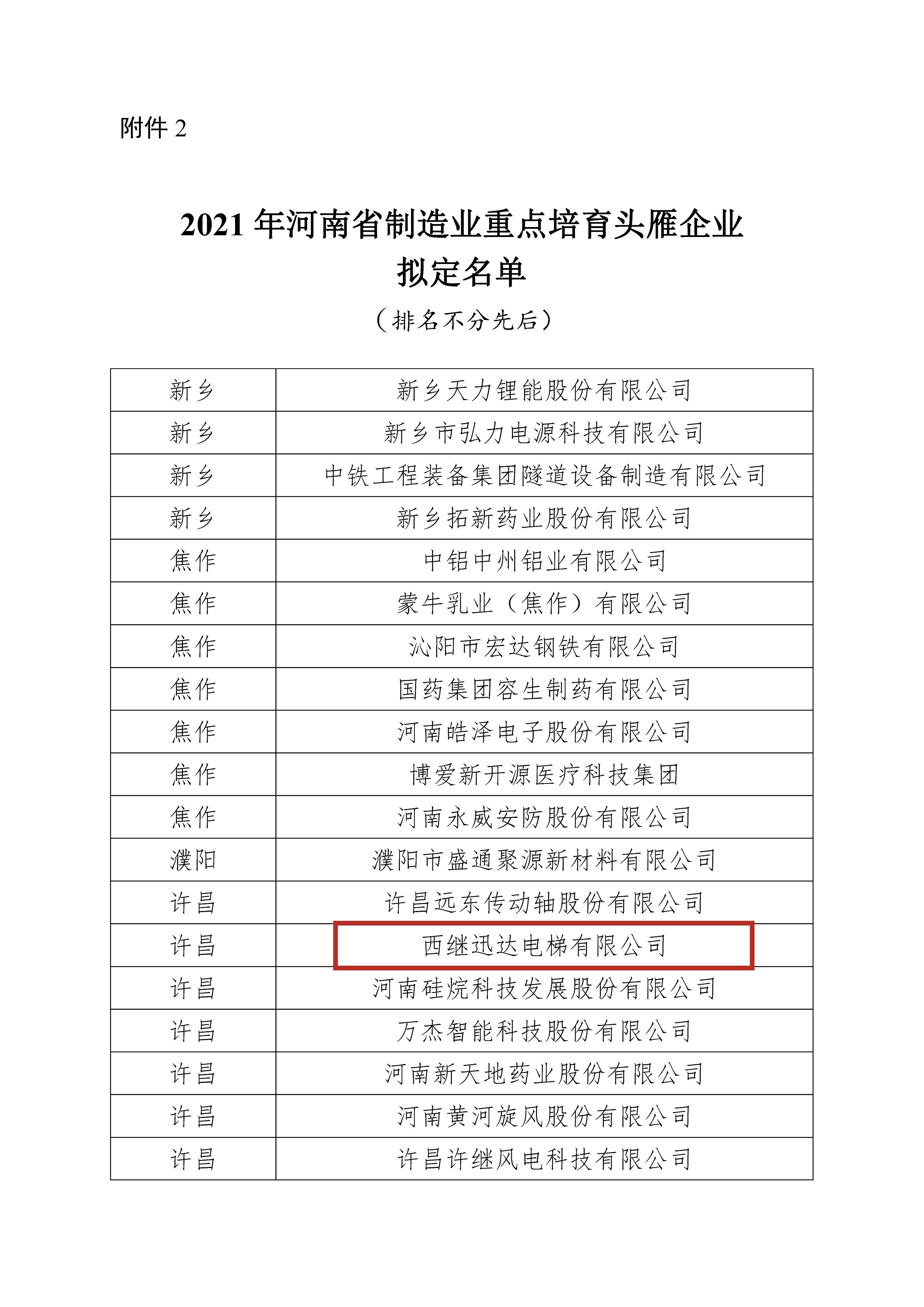 西繼迅達擬被認定“河南省制造業重點培育頭雁企業”