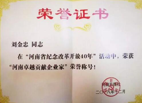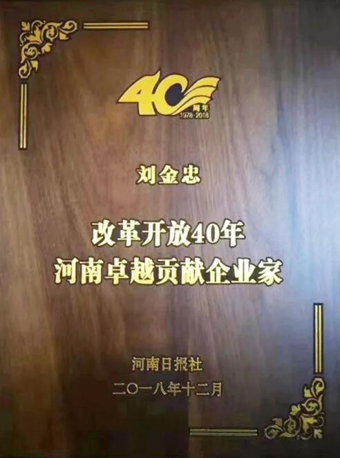 12月19日,西繼迅達電梯公司董事長劉金忠先生在“改革開放40周年暨集聚區建設10周年論壇”上,被授予“改革開放40年-河南卓越貢獻企業家”稱號。