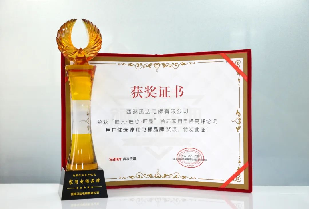 西繼迅達電梯榮獲“用戶優選家用電梯品牌”榮譽稱號