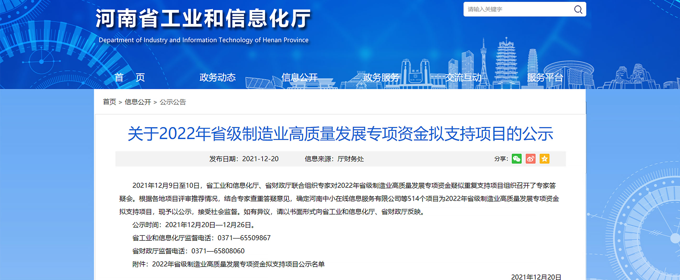 公司上榜2022年省級制造業高質量發展專項資金擬支持項目